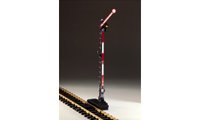 Hauptsignal Hp0/Hp1 Dieses klassische Hauptsignal ist auf vielen europäischen Eisenbahnen zu finden. Das Signal ist mit einem beweglichen Signalflügel und in der Farbe wechselnden Signalleuchten ausgestattet, um "Fahrt" (Hp1) und "Halt" (Hp0) anzuzeigen. |